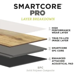 Attached pad reduces sound and increases comfort (for additional comfort and noise reduction, install with SMARTCORE Soft and Soundâ„¢ underlayment item #1191177)